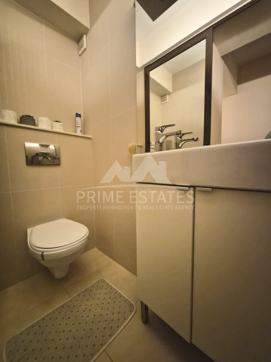 Interiorul impresionează printr-un flux natural de lumină și finisaje de înaltă calitate, creând o atmosferă modernă și primitoare. Spațiul este inteligent compartimentat pentru a maximiza confortul: beneficiați de două băi elegante, o bucătărie complet utilată (inclusiv mașină de spălat vase) și spații generoase de depozitare (dressing pe două laturi și dulapuri integrate pe hol); ușile sunt din lemn și antifonează fonic foarte bine.