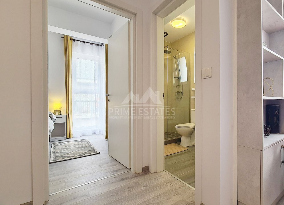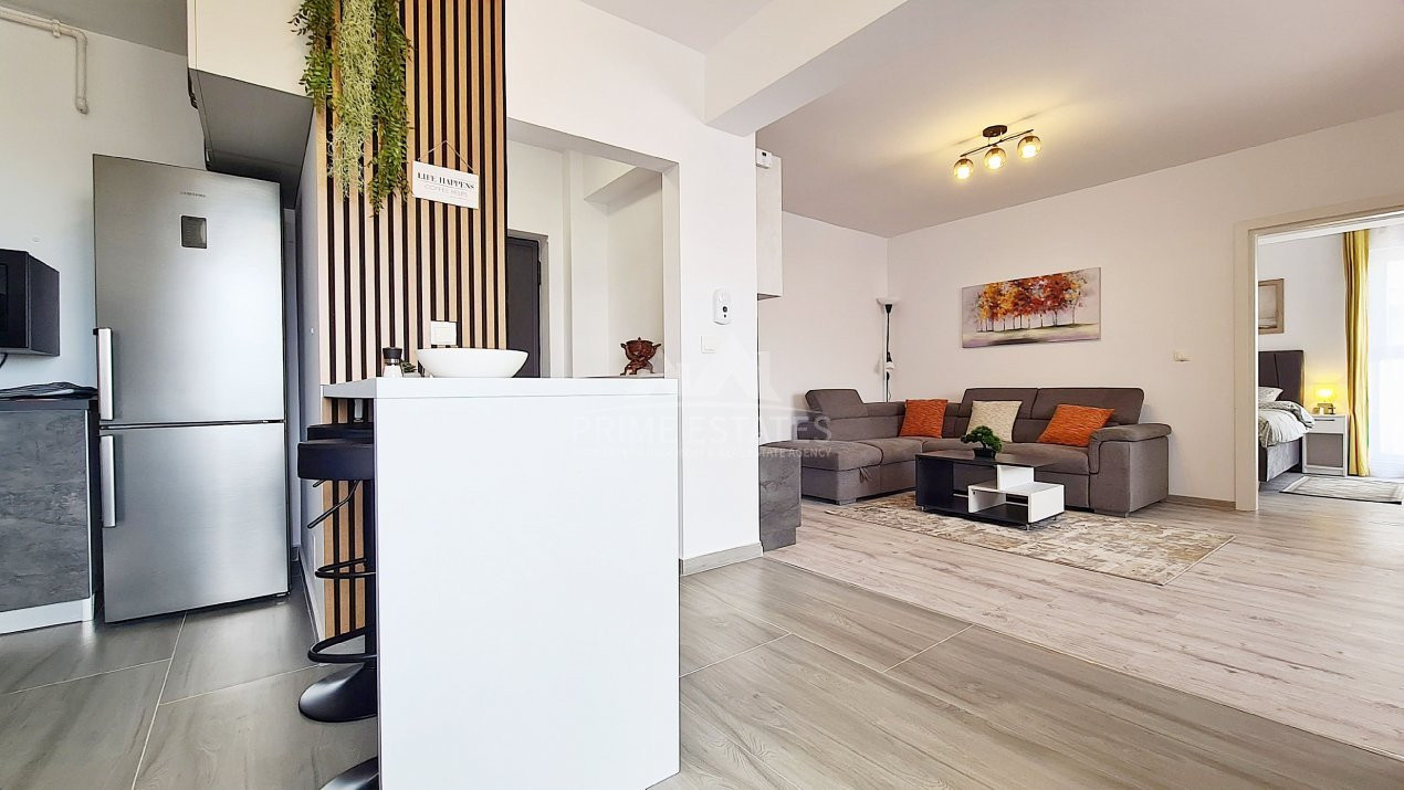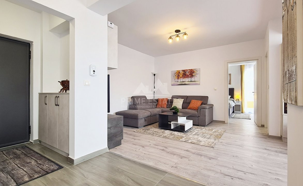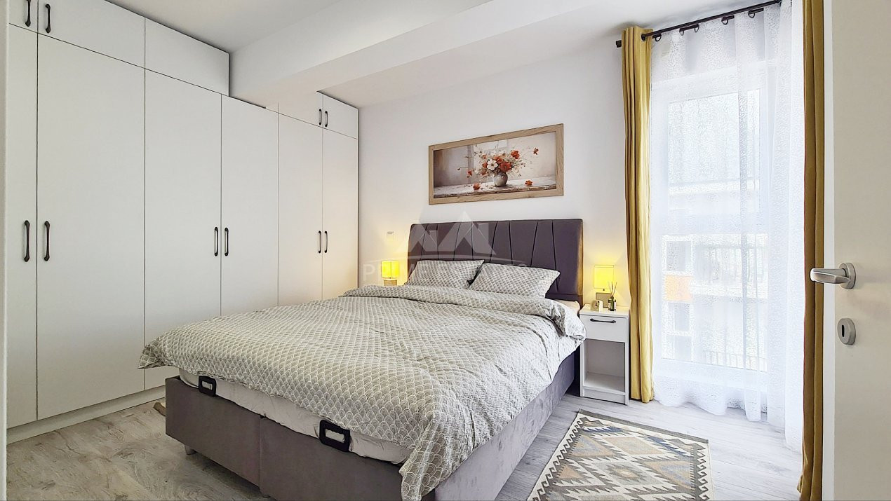 Inchirere apartament 2 camere, 48 mp utili, 59 mp cu cele 2 balcoane, mobilat modern si utilat cu centrala termica pe gaz, tv smart, cuptor electric, plita pe gaz, hota, masina de spalat rufe si de spalat vase, frigider, cuptor microunde, aer conditionat Inverter.