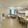 Living spațios și luminos, cu bucătărie open-space complet mobilată și utilată (plită electrică, cuptor, hotă, frigider), zonă de dining și televizor