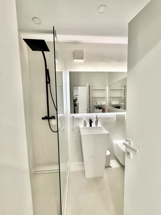 Apartamentul beneficiază de încălzire în pardoseală și finisaje contemporane, inclusiv microciment, oferind un ambient modern și elegant.